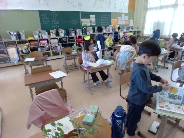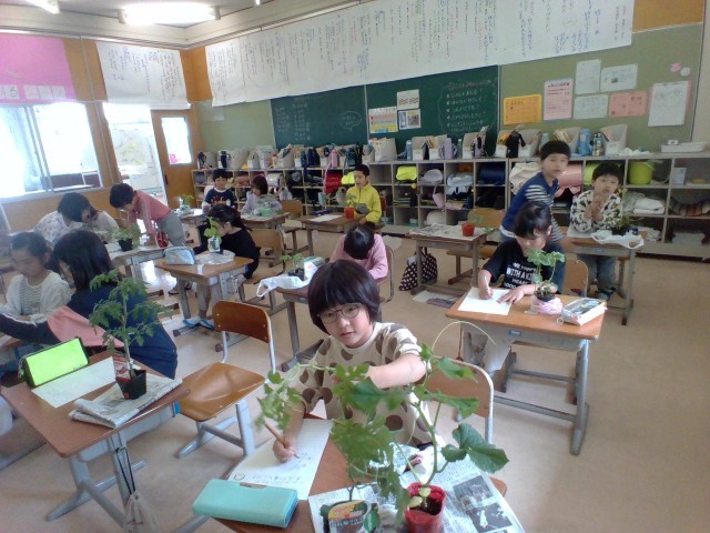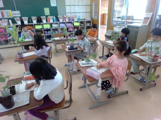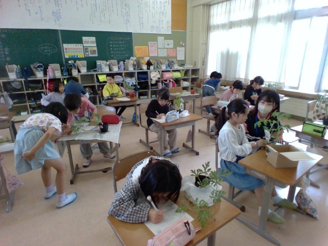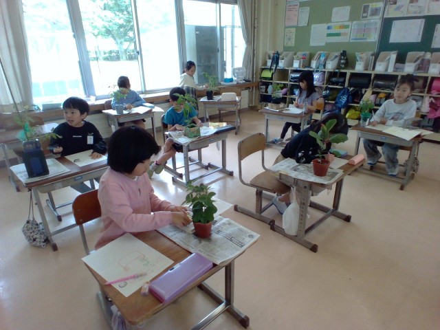 2年生 国語科・生活科 かんさつ名人になろう 公開日 2025/05/26 更新日 2025/05/26 2年生 国語科「かんさつ名人になろう」の学習で、観察するときに大切なポイントを確認し、生活科「わたしたちの野さいばたけ」で使う野菜の苗の観察をしました。葉っぱの色や形、大きさに注目したり、匂いや手触りを確かめたりして、苗を隅々まで観察しました。 +2
