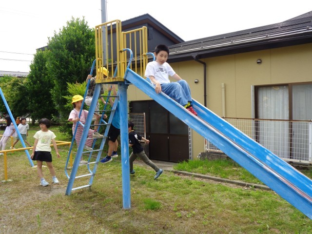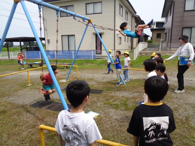 遊具で遊んだり、公園の自然や遊んでいる人の表情を調べたりして、ハッピーのヒントを見付けた様子でした。