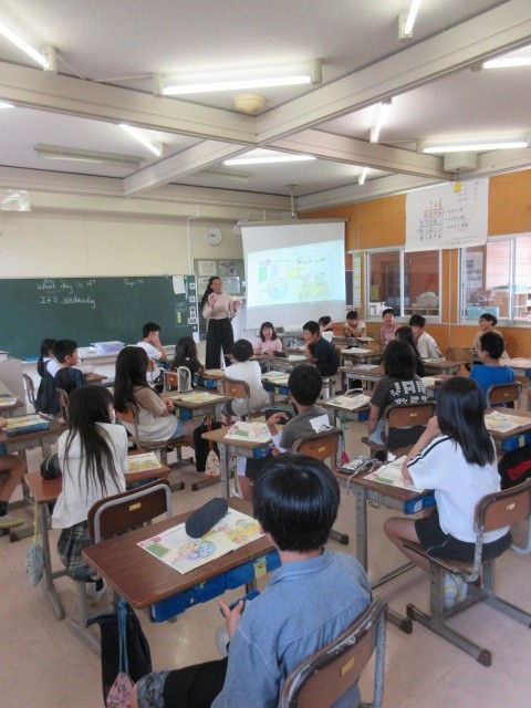 外国語活動では、曜日について学習しました。音楽に合わせて、楽しく曜日を英語で発音しました。