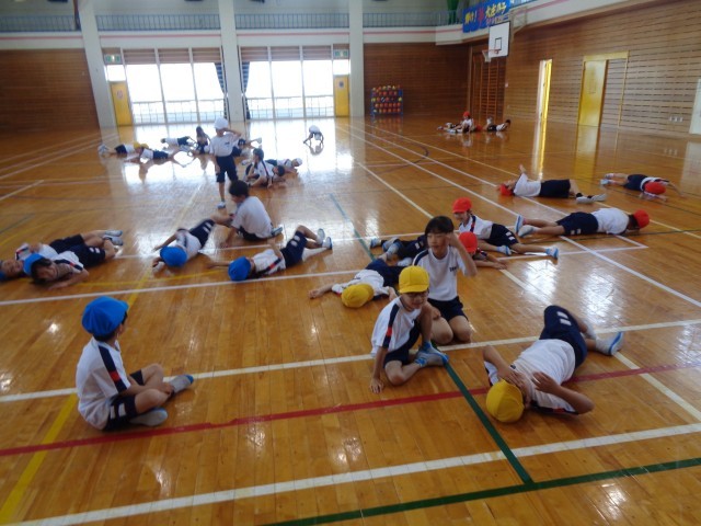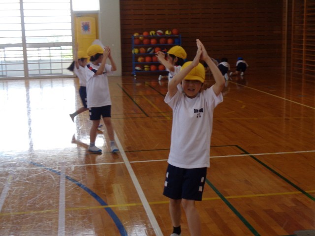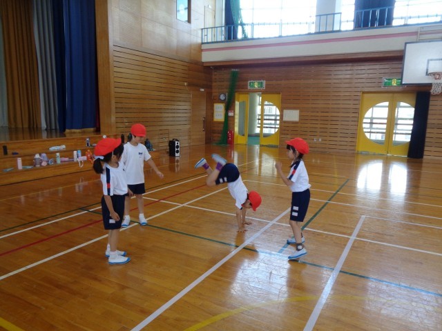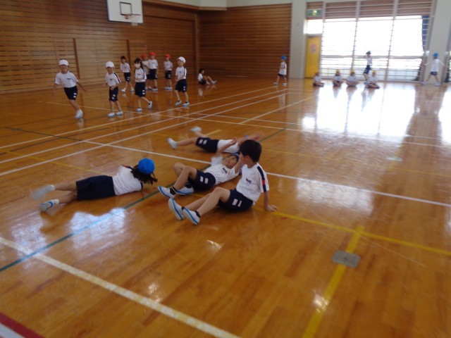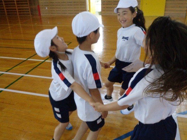 少人数のグループになって、友達の動きを真似することを楽しみました。