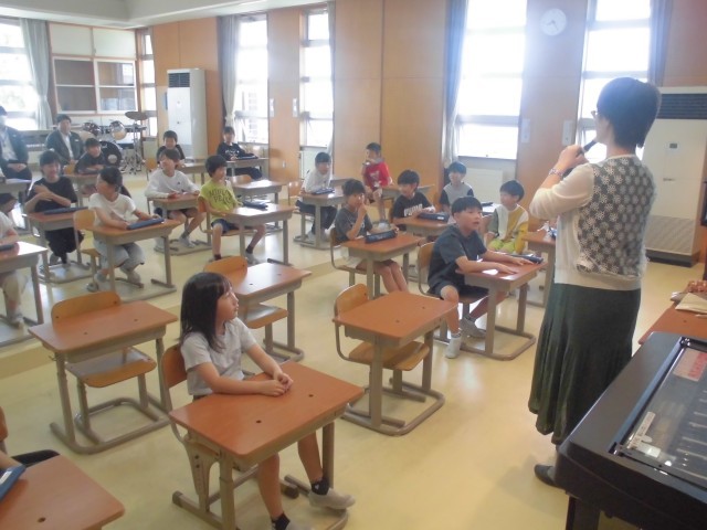 リコーダー指導の先生をお招きして、リコーダー教室を行いました。子供たちは、ワクワクしながらリコーダー演奏を楽しみました。また、講師の先生から様々なリコーダーを紹介していただき、その音色に聞き入っていました。