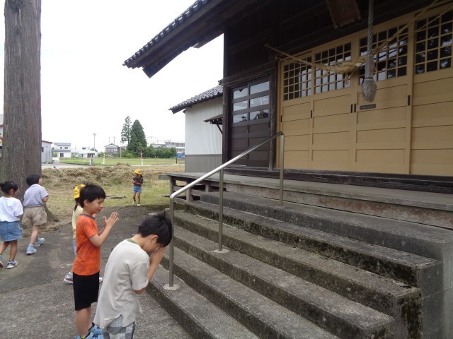 2年生 第2回町探検1(田畠神社) 公開日 2025/06/07 更新日 2025/06/07 2年生 2回目の町探検に出掛けました。今回は、田畠神社とやまびこ館に行きました。田畠神社では、神社の自然に触れたり、社殿をじっくり見て回ったりしました。 +2
