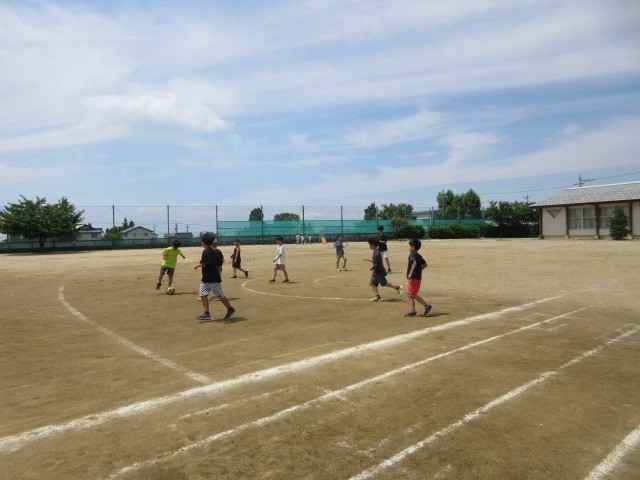 休み時間に思いっきり外で遊んでいます。6年生とサッカーをして楽しむ子供もいました。