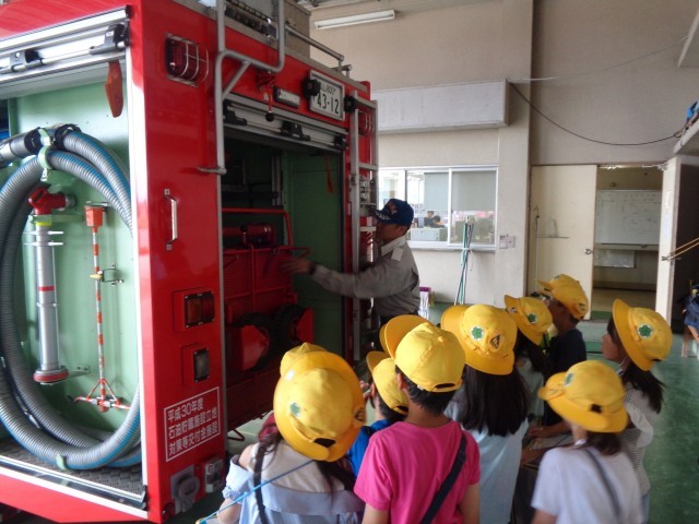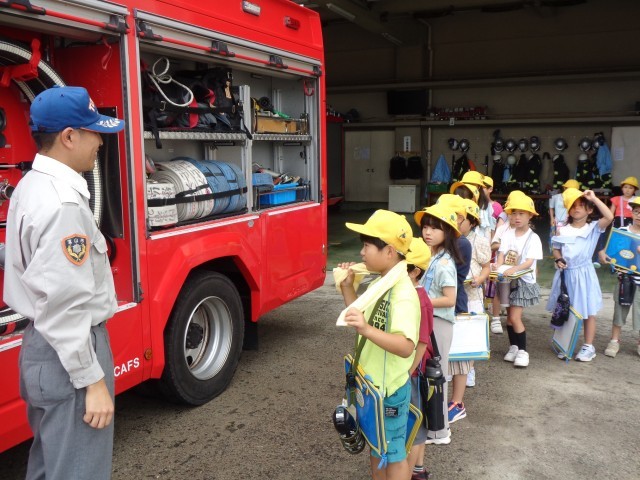 2年生 町探検6(大山消防署) 公開日 2025/06/27 更新日 2025/06/27 2年生 今日は大山消防署に見学に行きました。車両や庁舎を見せていただいたり、消防車に乗せていただいたりしました。また、訓練の様子も見ることができました。真剣に取り組んでおられる様子を見て、このような努力が大山地域のハッピーを守ることに繋がっていると感じていました。 +5
