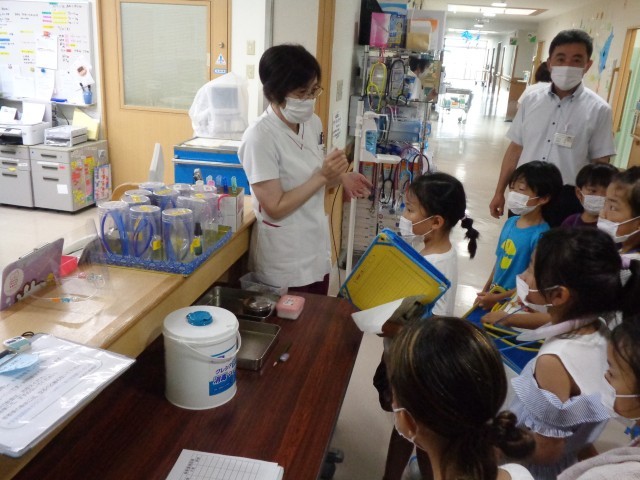 2年生 校区探検8(おおやま病院) 公開日 2025/07/14 更新日 2025/07/14 2年生 8回目の町探検は、おおやま病院に行きました。診察室やレントゲン室などの部屋を見学したり、看護師さんや介護士さん、栄養士さんなど病院で働く方からどんな仕事をしているか話を伺ったりしました。熱中症予防のために、ジュースやあめを用意してくださったのがとても嬉しかったです。 +6