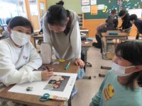 のこぎりを使って、使えるものを作成しています。のこぎりの使い方に気を付けながら友...