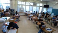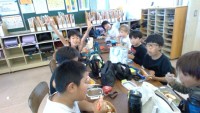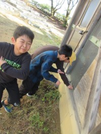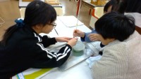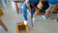 のこぎりを使って、使えるものを作成しています。のこぎりの使い方に気を付けながら友...
