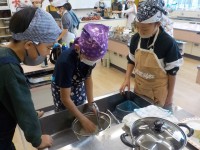 5年生は、調理実習でごはんとみそ汁を作りました。同じ班の友達と役割を分担したり...