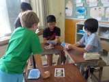 図工です。風景や芸術作品の絵カードを引いて、引いたカードから想像できるお話をつく...
