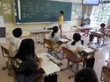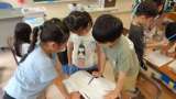 1年生は、夏休みの思い出をインタビューし合いながら、ビンゴゲームに取り組みまし...