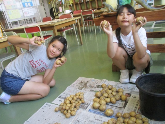 5月に植えたジャガイモが成長し、収穫の時期を迎えました。