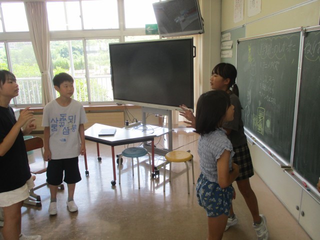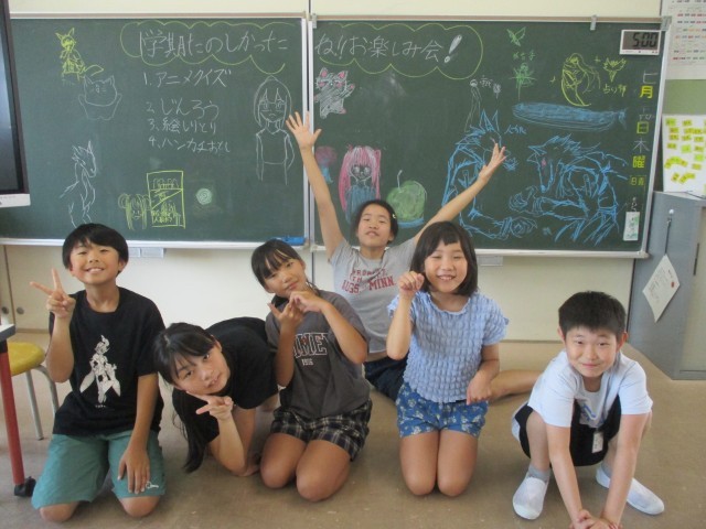掃除の後は、みんなでお楽しみ会をしました。自分で考えたクイズを紹介したり、カードゲームや絵しりとり等をしたりして、みんなで楽しく過ごしました。