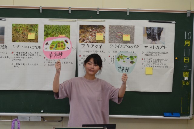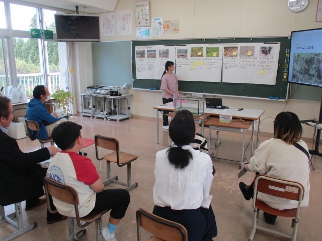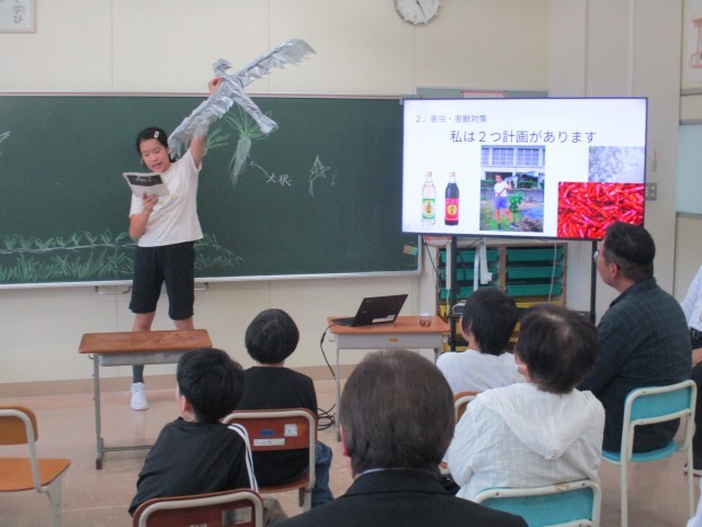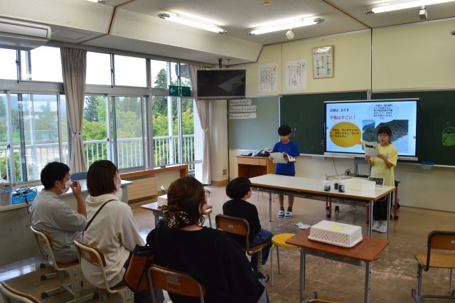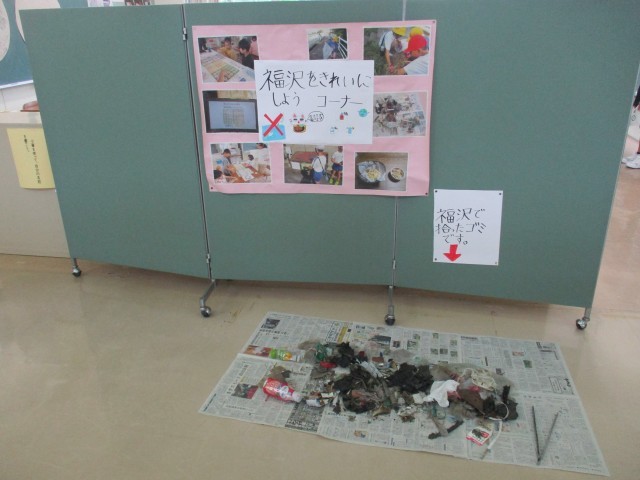 「福沢の生き物を守ろうプロジェクト」「福沢をきれいにしようプロジェクト」「福沢でおいしい野菜を育てようプロジェクト」「畔田牧場のすてきを広めようプロジェクト」の4つのブースを作り、スライドでまとめたものクイズ形式で発表したり、実際に体験してもらったりしてみんなに楽しみながら、福沢のすてきを発表しました。