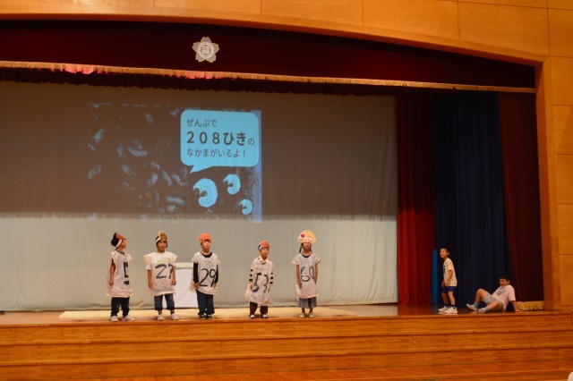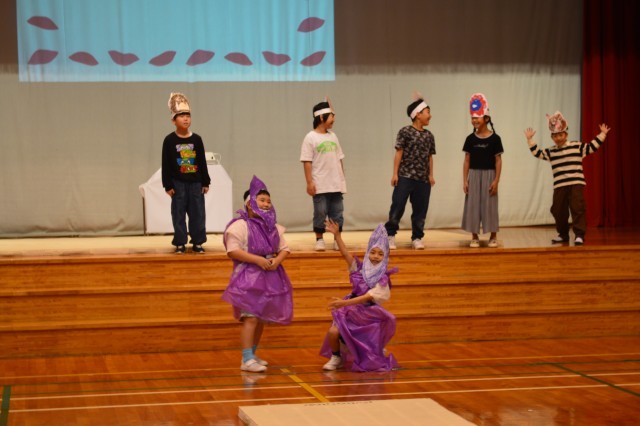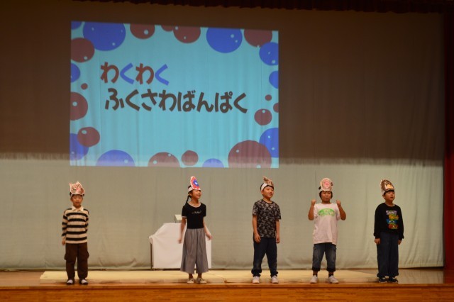 下学年の劇「きたぞ!わくわく・ふくさわばんぱく」の様子です。
