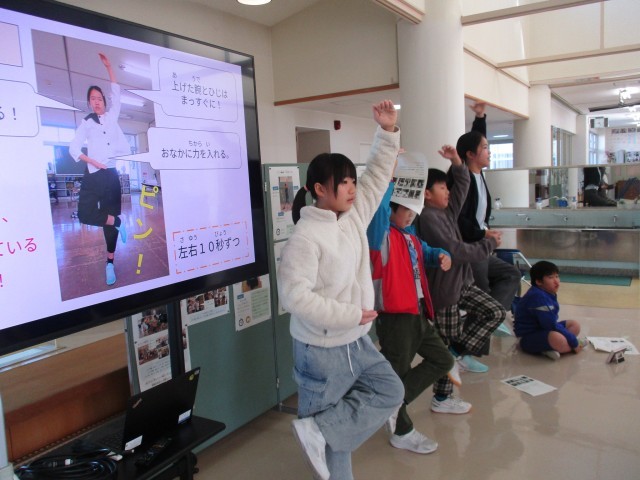 今日の早朝運動では、新しい「姿勢ピン!ポーズ」を3ポーズ行いました。