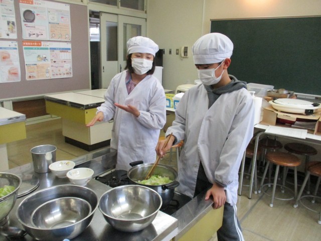 今日は、調理実習を行いました。かつおぶしでだしを取って作る「お味噌汁」に挑戦しました。