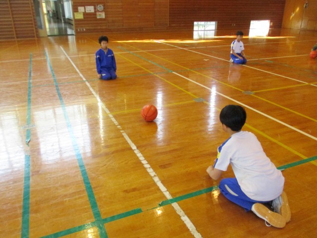 この日は、教頭先生と一緒に、バスケットボールを使って楽しく運動しました。