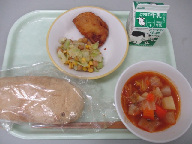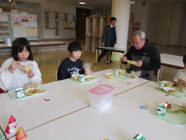 福沢スペシャル給食として「きな粉揚げパン」を食べました。朝から揚げパンを楽しみにしていた子供たちは、笑顔いっぱいで給食を食べていました。
