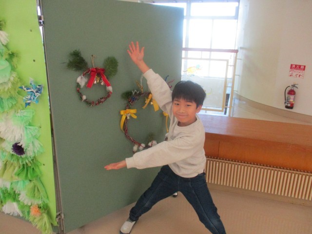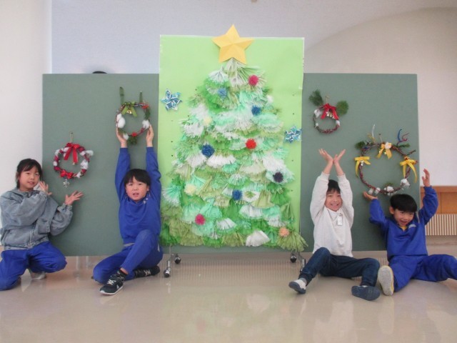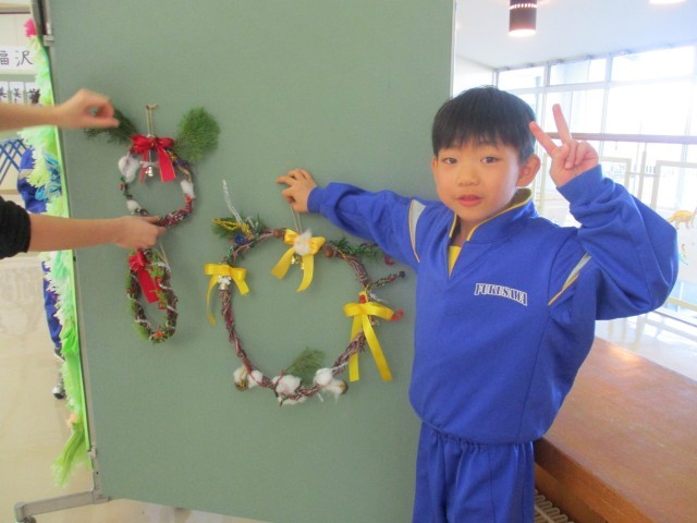 図工の時間では、サツマイモのツルを使って、「クリスマスリース」を作りました。