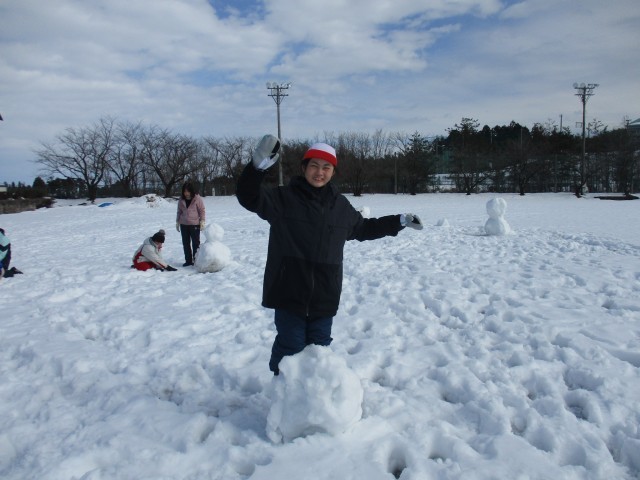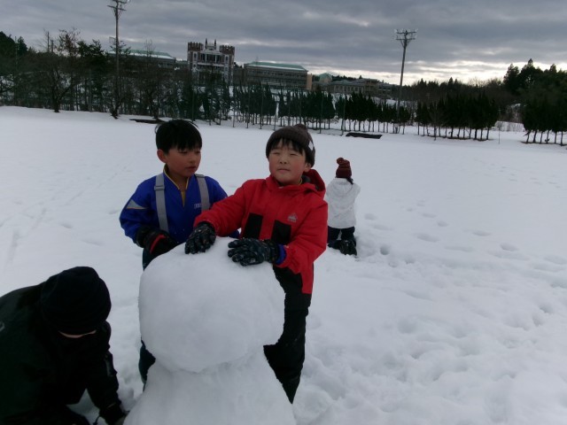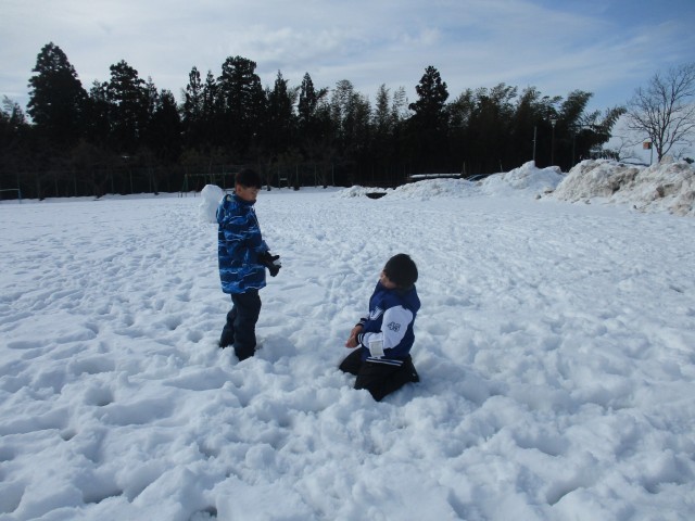 大きな雪だるまを作ったり、雪玉を投げ合ったりと子供たちはとても楽しく活動することができました。
