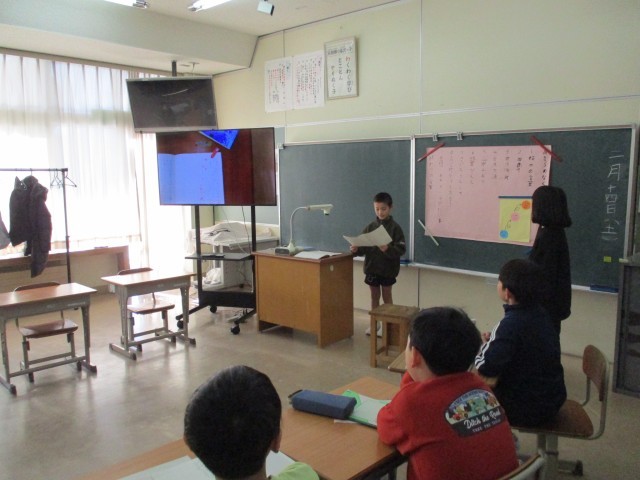学級目標のあきらめない強い心を目指して、各自があきらめずに努力して取り組んだことを発表しました。