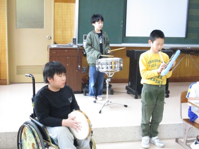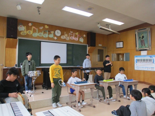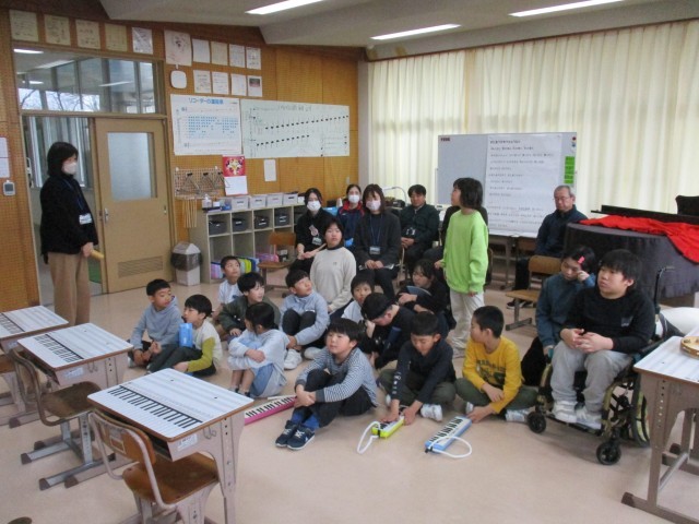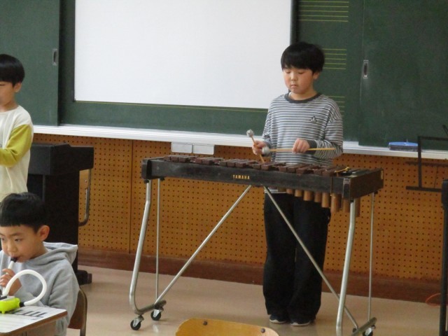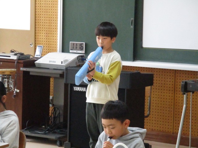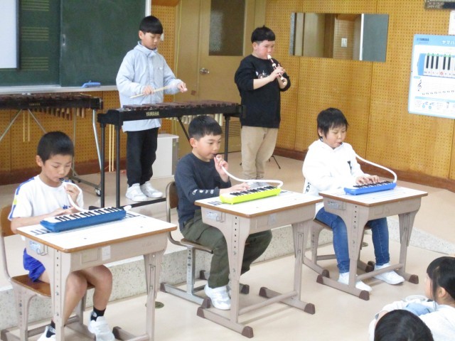 各学年の教科書にある曲をリコーダーやハーモニカ、木琴等の楽器を使って発表したり、他の学級の演奏を聴き合ったりしました。