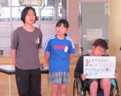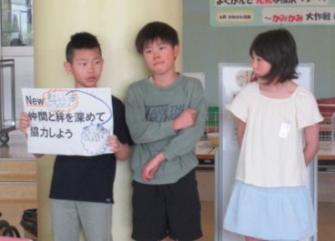 始業式の日から、5・6年生はどんな福沢っ子になってほしいのかを想像しながら、児童会目標を考えてきました。今日は、全校のみんなに3つの案と、その思いを説明しました。お知らせ後は、一生懸命に考えた児童会目標の思いが全校のみんなに伝わり、ほっとした様子でした!
