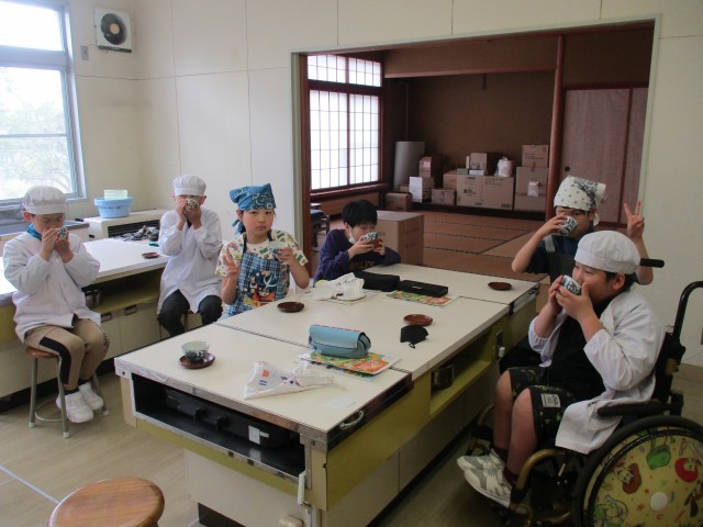 最後にお茶をいただき、「おいしくて、ほっとする!」「苦いけれど、最後に少し甘い味がする!」と、ほっと一息、穏やかな時間を過ごしていました。