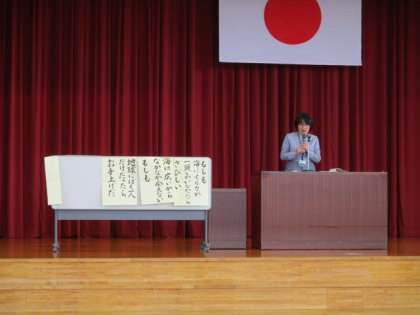 始業式では、校長先生が川崎洋さんの詩を紹介し、仲間がいることや仲間がいればがんばれることを話しました。