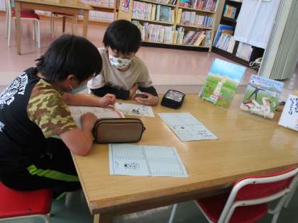 図書室のオリエンテーションがありました。司書の先生に本の読み聞かせをしてもらったり、図鑑を見て調べる方法を教えてもらったりしました。