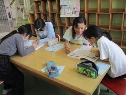 図書室のオリエンテーションがありました。司書の先生に本の読み聞かせをしてもらったり、図鑑を見て調べる方法を教えてもらったりしました。