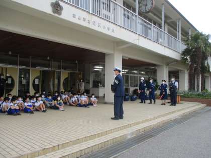 富山南署の方と交通安全指導員の方に来ていただき、交通安全教室を行いました。