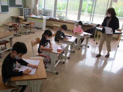1年生は、ひらがなの学習を進めています。一画ずつ丁寧に書くようにがんばっています。