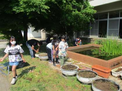 資源回収後に、学校の環境整備として草むしりや植木鉢等の整理整頓も行いました。
