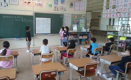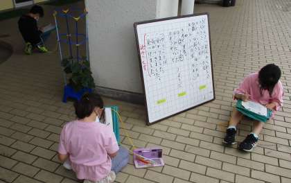 国語の授業でくわしく観察するポイントを学習しました。今日はそのポイントを参考にしながら、アサガオや野菜をよく見て、発見カードを書きました。