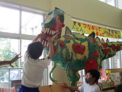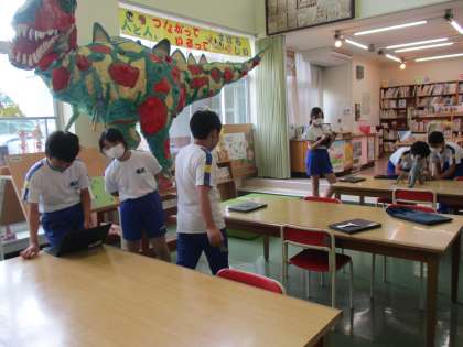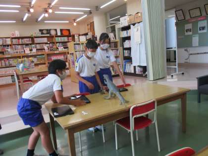 上学年(4年〜6年)は、合同学習で「自分が見付けたお気に入りの場所で小さな自分を動かそう」という学習をしています。今日は、自分が見付けた楽しい場所に小さくなった自分を置いて写真を撮りました。いろいろ楽しい作品が出来上がりそうです。