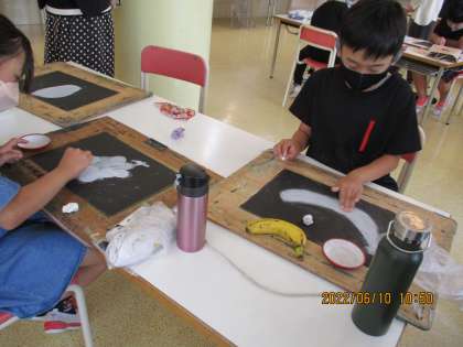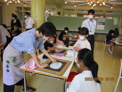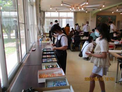 江尻純子先生を講師にお迎えし、全校でパステル画を描きました。描きたいモチーフを自分で用意し、構図や色を考えながら描きました。