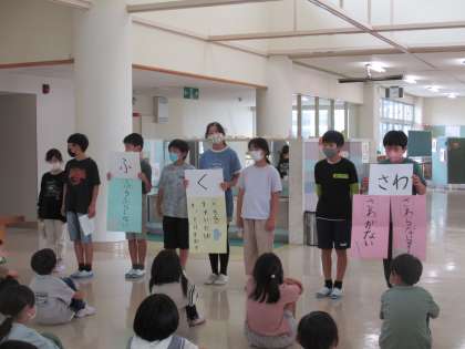 今日の昼休みに、歯みがき集会を行いました。元気モリモリ委員会の子供たちが、福沢小学校の子供たちの歯みがきの問題点と解決案について発表しました。明日から「歯みがき名人 ふくさわっ子週間」を行います。全校が歯みがき名人を目指して取り組みます。