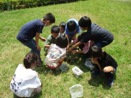 いきものとなかよし 公開日 2022/06/24 更新日 2022/06/24 学校 合同学習「いきものとなかよし」で、つかまえてきた虫たちを放しました。「広い場所の方が生き生きと自由に動ける」「えさがたくさんある場所で住んだ方がいい」という意見が出て、ほとんどの子供たちが賛同しました。トノサマバッタが飼育ケースから出た瞬間、元気よく羽ばたいて飛んだ様子を見て、「よかった」とつぶやく子供たちでした。