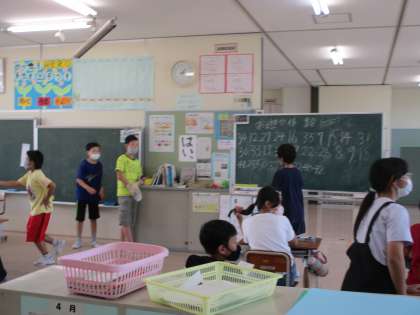今日のなかよしタイムは、お祭り係主催の集会でビンゴ大会をしました。ビンゴがとても楽しそうでした。また、ビンゴになったら、折り紙で作った昆虫がもらえましたが、そのクオリティの高さに子供たちは感動していました。みんなに喜んでもらって、お祭り係の子供たちも嬉しそうでした。
