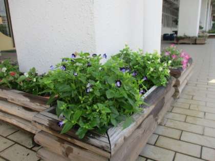 玄関にあるプランターの花たち。