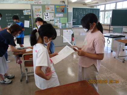 いよいよ2学期が始まりました。今日は2学期初顔合わせということで、みんなでレクリエーションをしました。「夏休みにスイカを食べましたか?」「夏休みに本を読みましたか?」など、質問をしながら友達同士で話をして盛り上がりました。子供たちは久し振りにみんなに会い、話をして嬉しかったと言っていました。