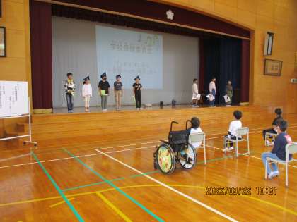 「ぐっすり すいみん〜笑顔いっぱい福沢っ子〜」をテーマに健康委員会の子供たちが発表をしました。ゲーム形式で進めたので、1年生から6年生まで楽しみながら参加しました。