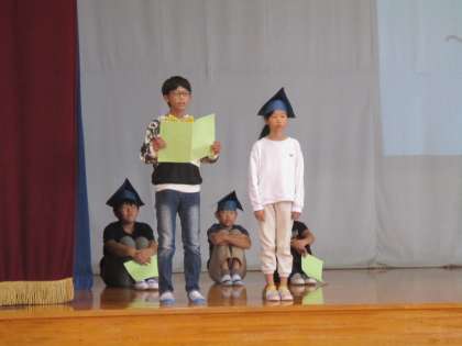 元気モリモリ委員会の発表では、練習した成果を発揮し堂々と発表できました。