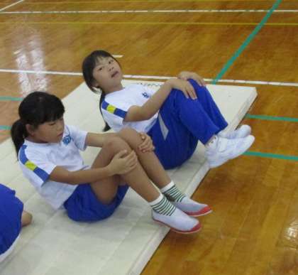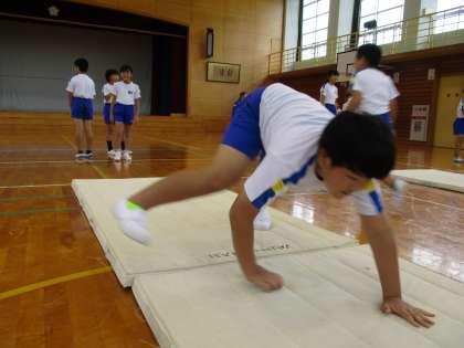 富山市のスポーツ指導者派遣事業として、スポーツ指導員の方が来校され、マット運動を教えてくださいました。子供たちは、基本の動きを繰り返し、練習しました。