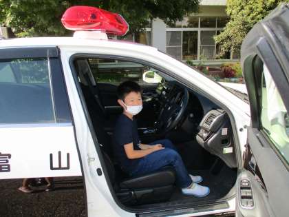 警察音楽隊のコンサートはとても迫力がありました。交通安全教室のあと、パトカーに乗せてもらいました。