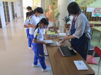子供たちは、自動車文庫で本を借りることを毎回楽しみにしています。順番を待つ様子も楽しそうです。