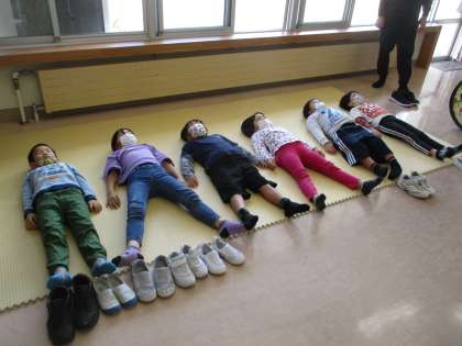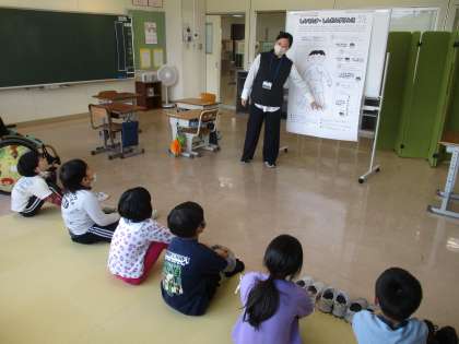 子供たちは、真剣に聞いていました。検査を受けるときの「息を吸って、吐いて、息を吸って、吐いて、止めて6秒間、おわり」の練習もしました。不安なく、スムーズに検診を受けられそうです。