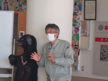 また、クマの剥製も持ってきていただき、子供たちは爪の鋭さやごわごわした毛並みに驚いていました。