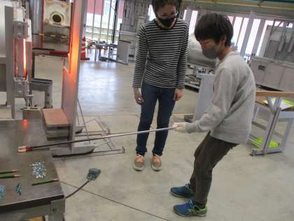 上滝小学校さん、小見小学校さんと一緒にガラス工房でペーパーウェイトを作ってきました。好きな形や色、デザインを選ぶところから子供たちはわくわくしていました。ガラスを扱っているときは、みんな緊張した様子でした。